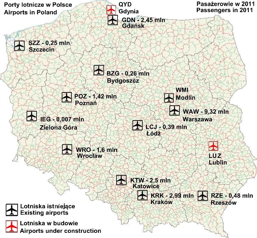 | 6 | Rzeszów Airport (RZE) | 170 | 4h-5h | 8PLN (3EUR)+40-60PLN (10-15EUR) |