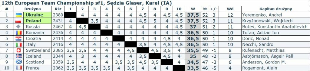 | 8 | 4 | 6 | 6½ | CCM | Sękowski, Paweł | 2400 | 5,0 | +1 | ||