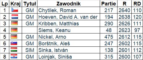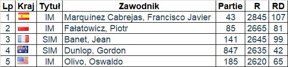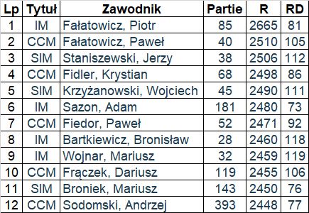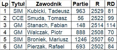 Z kolei czołówka polskich zawodników przedstawia się następująco (R=2400+):