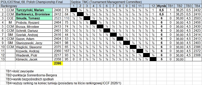 Średni ranking finału 68 MP wyniósł 2396, co jest odpowiednikiem turnieju międzynarodowego 6 kategorii.